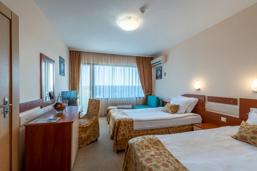 Hotelul Burgas Beach se remarcă prin trei atuuri esențiale: poziția de primă linie direct pe plaja cu nisip, pachetul all inclusive generos cu activități variate incluse și facilitățile dedicate familiilor cu copii. Un aspect de luat în considerare: Wi-Fi-ul gratuit este disponibil doar în holul hotelului, nu și în camere, ceea ce poate reprezenta un inconvenient pentru cei care lucrează de la distanță. Cu toate acestea, Burgas Beach rămâne una dintre opțiunile de top din Sunny Beach pentru familii cu copii de toate vârstele, cupluri și grupuri de prieteni care doresc o cazare confortabilă, animată și accesibilă direct la malul mării.