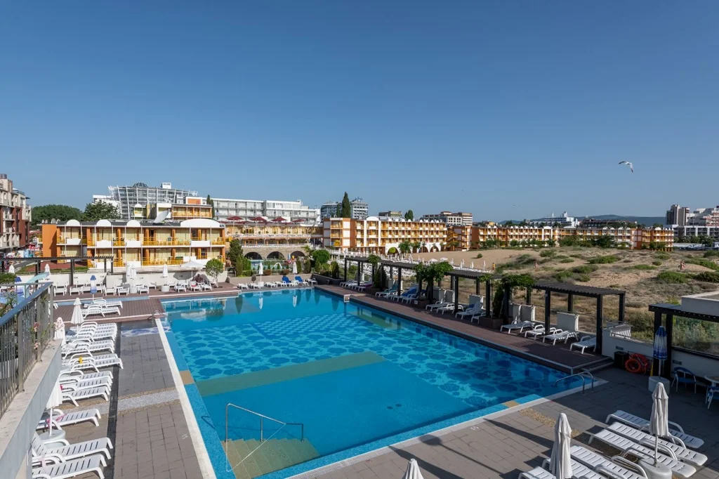 Burgas Beach este un hotel de 4 stele amplasat direct pe plaja cu nisip fin din celebra stațiune Sunny Beach, oferind turiștilor o experiență completă de vacanță all inclusive la malul Mării Negre bulgare. Construit în 1971 și renovat integral în 2013, hotelul impresionează prin impunătoarea sa clădire de 19 etaje, din care se desfășoară priveliști spectaculoase spre mare sau spre stațiune. Cu un pachet all inclusive generos, facilități variate și o localizare de primă linie, Burgas Beach este alegerea ideală pentru familii cu copii, cupluri și grupuri care doresc un sejur relaxant și plin de activități.