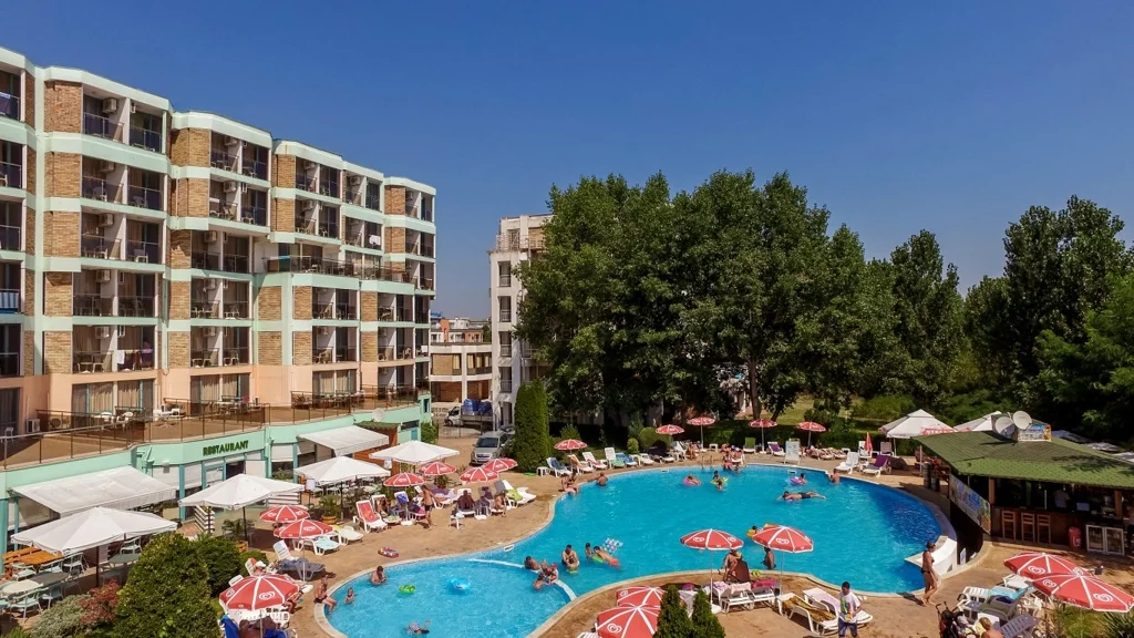 Hotel Delfin din Sunny Beach este o alegere excelentă pentru turiștii care doresc un sejur relaxant la malul Mării Negre, la un raport calitate-preț atrăgător. Cu o clasificare de 3 stele și complet renovat în 2025, hotelul combină confortul modern cu accesul facil la una dintre cele mai animate stațiuni din Bulgaria. Regimul All Inclusive și atmosfera prietenoasă îl fac ideal atât pentru familiile cu copii, cât și pentru cuplurile sau grupurile de prieteni în căutarea unei vacanțe fără griji.