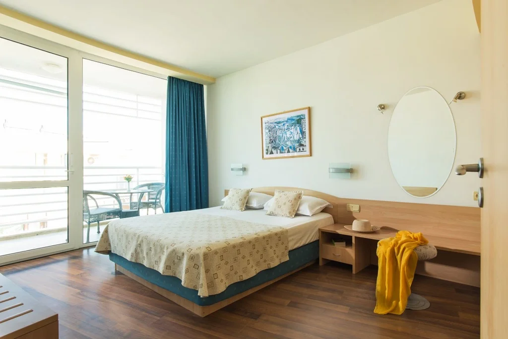 Camera Dublă – 20-23 m², capacitate maximă 2+1/3 persoane, disponibilă cu vedere la parc, vedere laterală la mare sau vedere la mare. Dotată cu aer condiționat central, televizor prin satelit, minibar (apă, bere, băuturi răcoritoare – gratuit), telefon, seif gratuit, fierbător, Wi-Fi gratuit, baie cu duș, prosoape, uscător de păr și produse cosmetice, balcon mobilat și pardoseală laminată. Camerele cu vedere la parc și vedere laterală la mare dispun de canapea extensibilă pentru un pat suplimentar. Camerele cu vedere la mare au pat dublu și sunt disponibile pentru maximum 2 persoane.