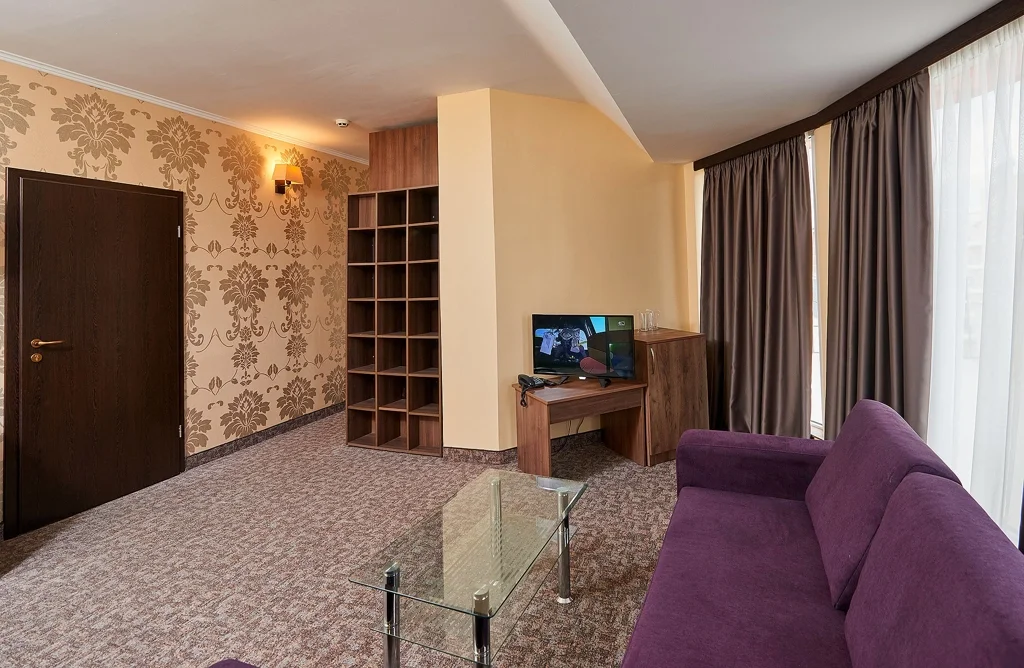 Apartamentul cu un dormitor – 40 m², cu capacitate de până la 4 persoane, este cea mai generoasă opțiune de cazare din hotel, potrivită pentru familii care au nevoie de spațiu suplimentar și intimitate. Hotelul Forum SB dispune de 3 astfel de apartamente, dotate similar cu celelalte tipuri de camere.