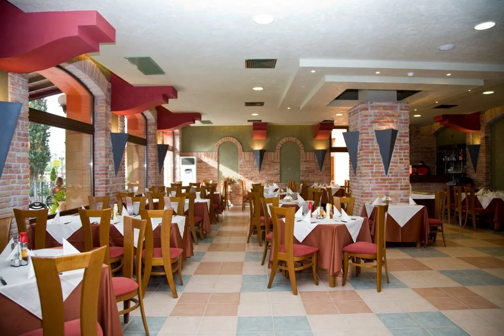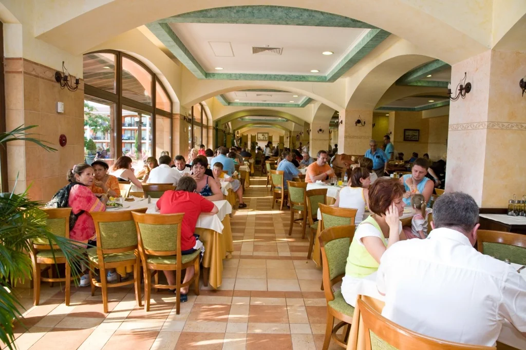 Regimul All Inclusive la Hotel Hrizantema include trei mese principale pe zi, servite sub formă de bufet în restaurantul principal, cu opțiuni variate care satisfac toate gusturile. Snack-urile între mese și băuturile locale alcoolice și nealcoolice sunt disponibile la barurile din hotel, contribuind la o experiență de vacanță completă și fără griji. Este important de notat că băuturile importate sunt disponibile contra cost.