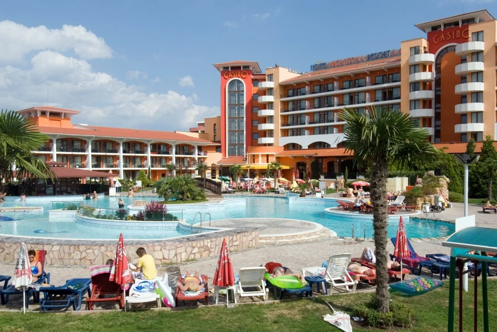Descoperiți fascinantul Hotel Hrizantema, un paradis de 4 stele situat în inima vibrantă a Sunny Beach. Cu o renovare recentă în 2015, acest hotel promite o experiență de neuitat, combinând confortul modern cu servicii de excepție, ideal pentru familii, cupluri și grupuri de prieteni care caută o escapadă perfectă la malul mării.