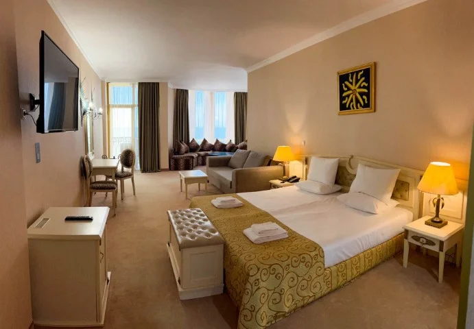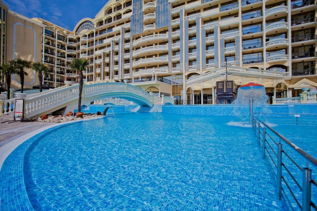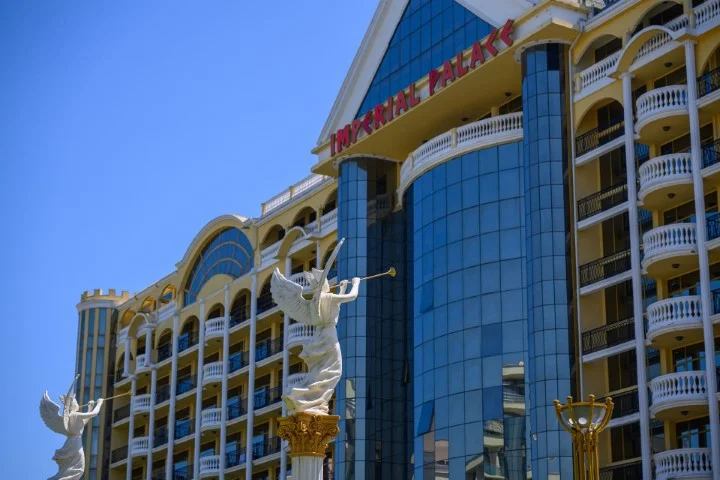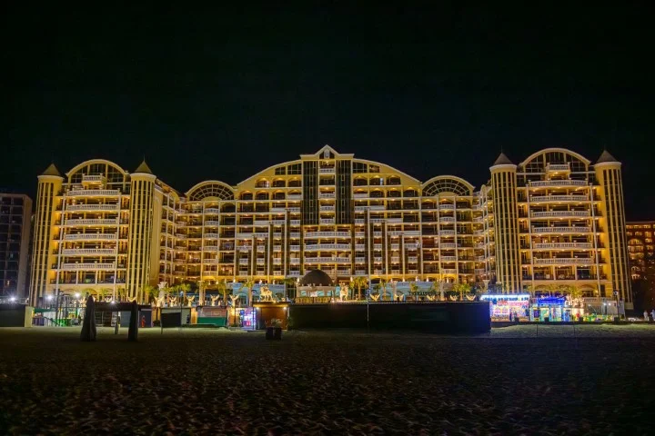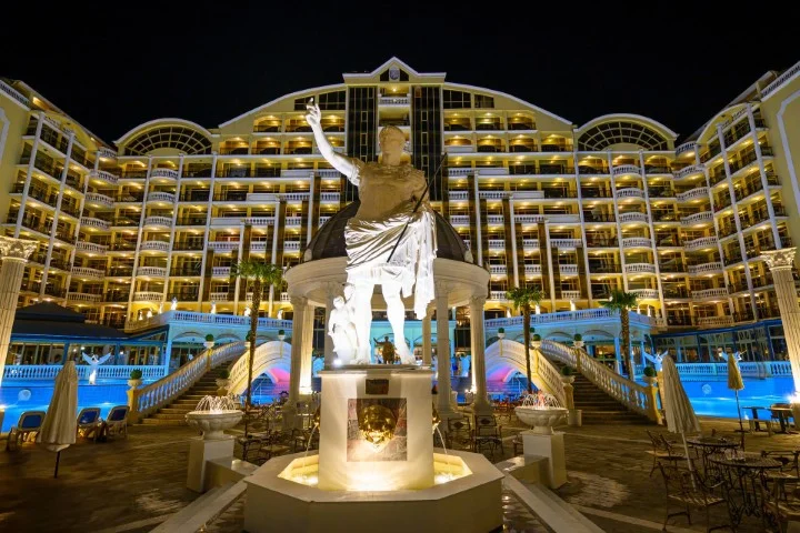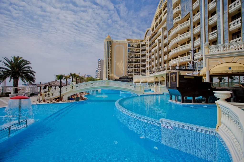 Descoperiți o oază de relaxare și distracție la Imperial Palace, un hotel de 4 stele situat direct pe malul mării, în Sunny Beach. Cu renovări recente în 2026 și o gamă largă de facilități, acest resort este ideal pentru orice tip de vacanță, fie că călătoriți cu familia, în cuplu sau cu prietenii. Experimentați un sejur de neuitat, unde confortul întâlnește luxul accesibil și distracția.