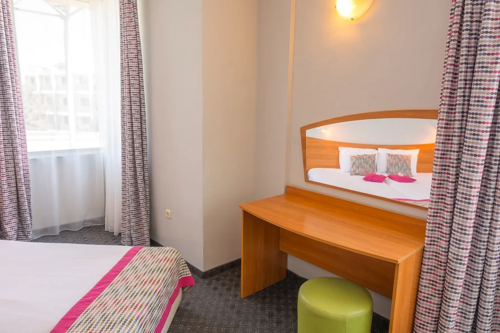 Descoperiți oaza de relaxare și distracție de la Hotel MPM Kalina Garden, clasificat la 4 stele și situat în inima vibrantă a stațiunii Sunny Beach. Cu o renovare recentă în 2015, acest hotel oferă o experiență de cazare modernă și confortabilă, ideală pentru familii cu copii, cupluri sau grupuri de prieteni în căutarea unei vacanțe de neuitat la malul mării.