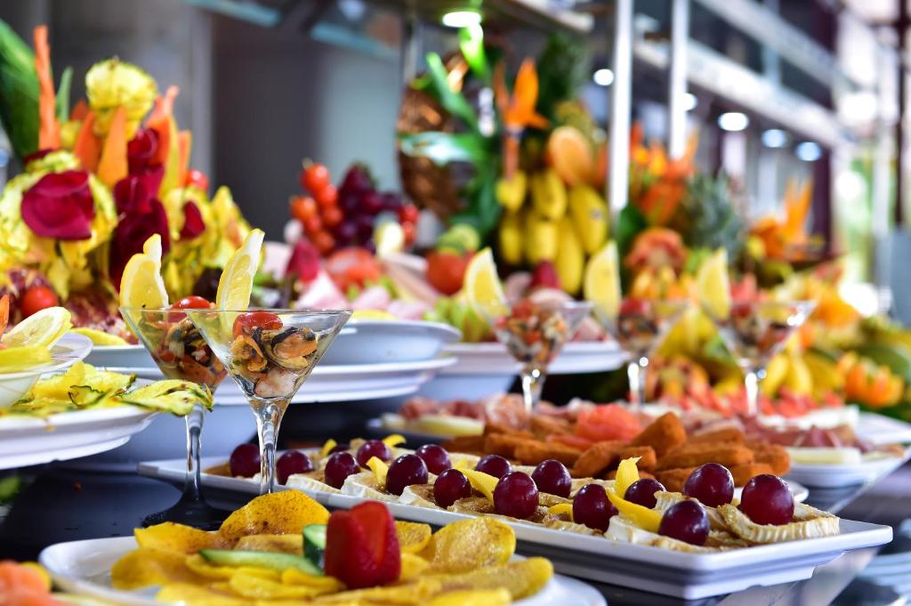 Cele 6 localuri pentru luat masa ale Hotelului Pestana includ restaurantul Panoramic cu vedere panoramică la golf şi zona piscinei. Aqua are vedere la grădinile hotelului şi la cazinou, iar restaurantul Sunset oferă un meniu à la carte şi un cocktail bar.