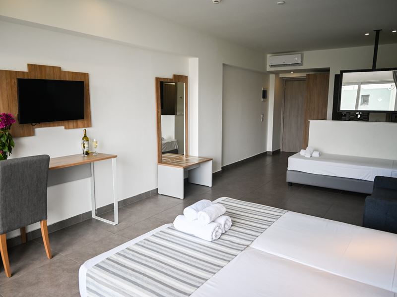Această cameră este perfectă pentru familii sau grupuri mici, având o capacitate de până la 3 persoane (2 adulți și 1 copil). Camerele au o dimensiune de 22-28 m² și sunt echipate cu un pat dublu mare sau două paturi de o persoană și un pat suplimentar simplu. La fel ca în toate camerele, există aer condiționat gratuit, un set pentru prepararea ceaiului sau cafelei și un telefon. Baia include un duș, iar în cameră vei găsi și un minibar gol. Camerele dispun de balcon, iar oaspeții se pot bucura de vederi spre oraș sau stradă.