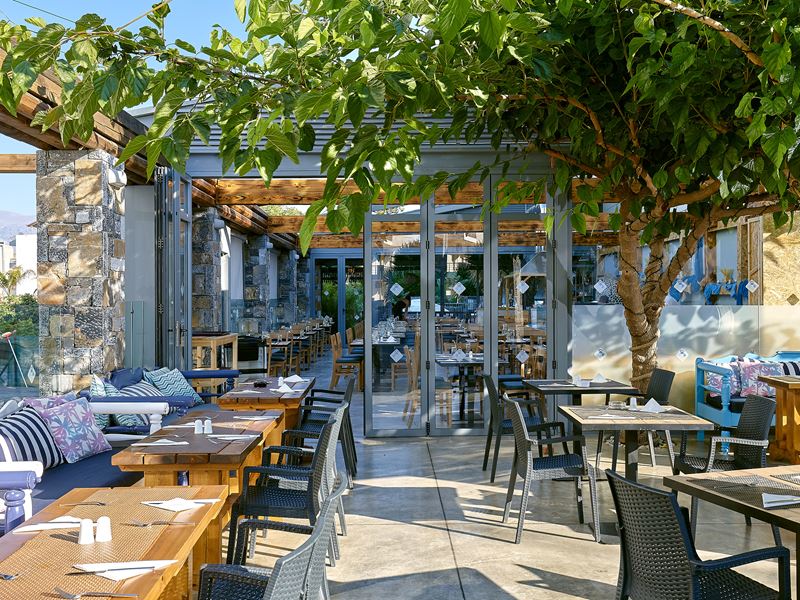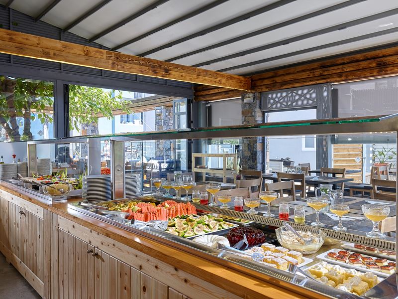 Hotelul oferă opțiuni de masă Half Board și All Inclusive, cu mese tip bufet pentru mic dejun și cină la restaurantul hotelului „Pollis Restaurant”. De asemenea, oaspeții pot savura gustări și băuturi la barul hotelului între orele 11:00 și 23:00. Băuturile alcoolice și nealcoolice sunt disponibile, iar înghețata este inclusă în pachetul All Inclusive.
