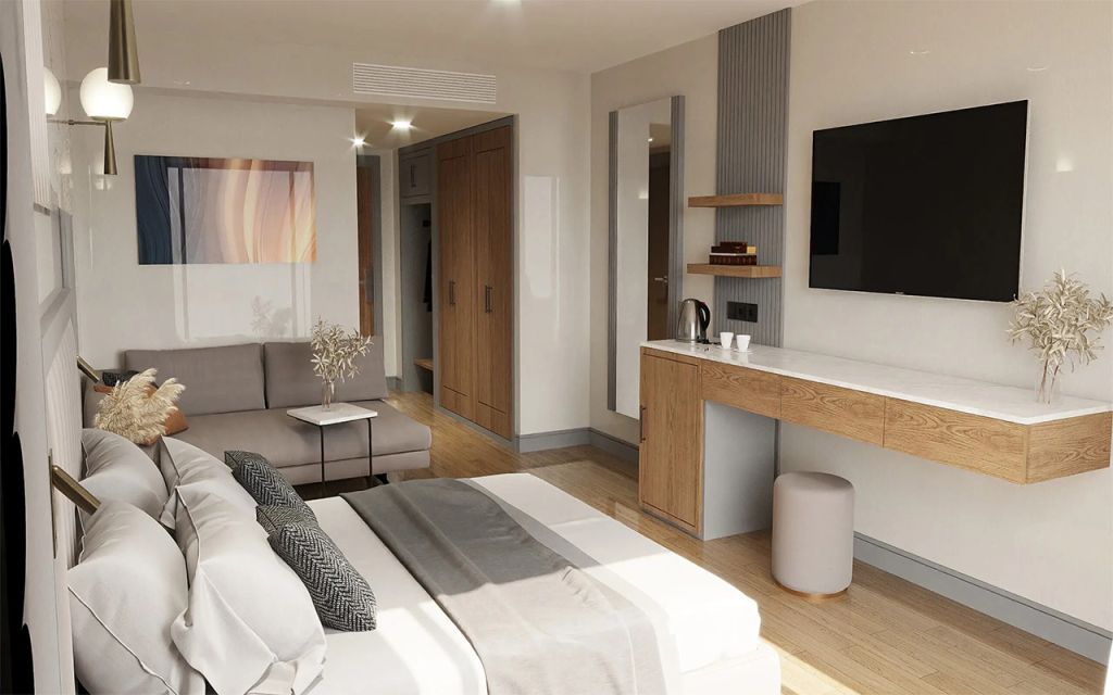 Superior Standard Room - 35 m², capacitate maximă de 3 persoane, dotat cu TV, aer condiționat, balcon, Wi-Fi și minibar.