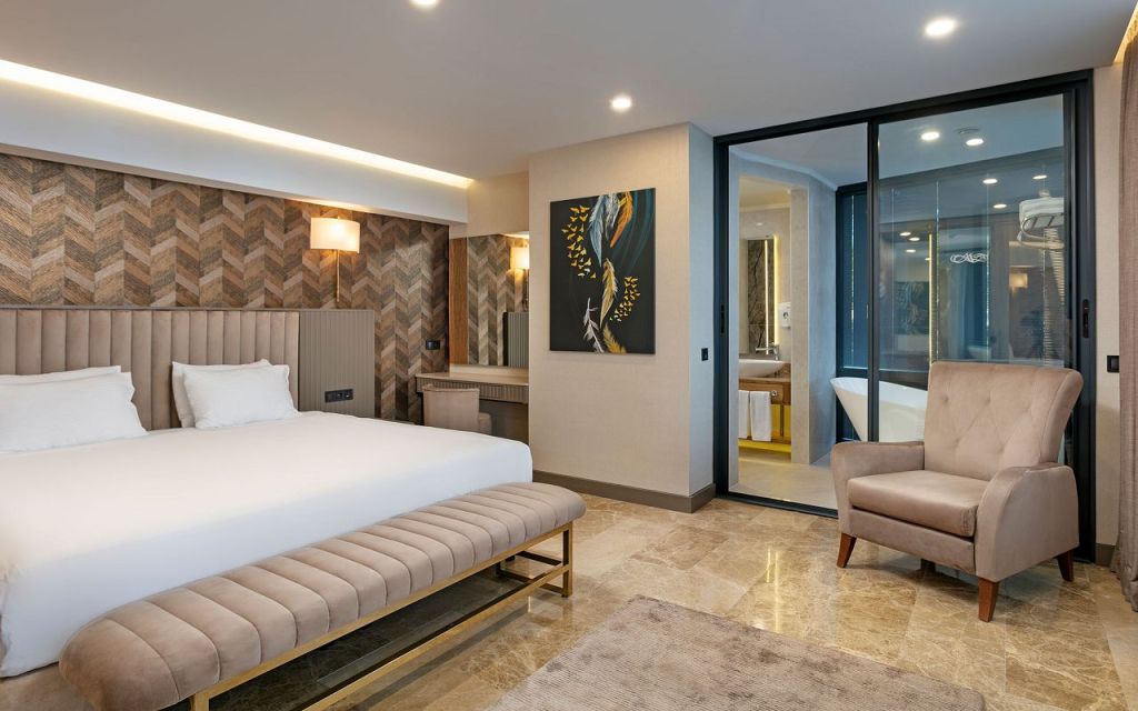 Superior Swim Up Room - 56 m², pentru 4 persoane, disponibil cu acces direct la piscină, TV și Wi-Fi.
