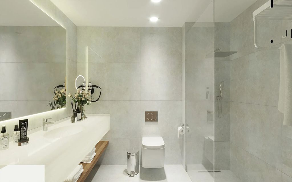 Terrace Suite - 57 m², capacitate de 4 persoane, caracteristici include TV, zona de relaxare și terasă spațioasă.