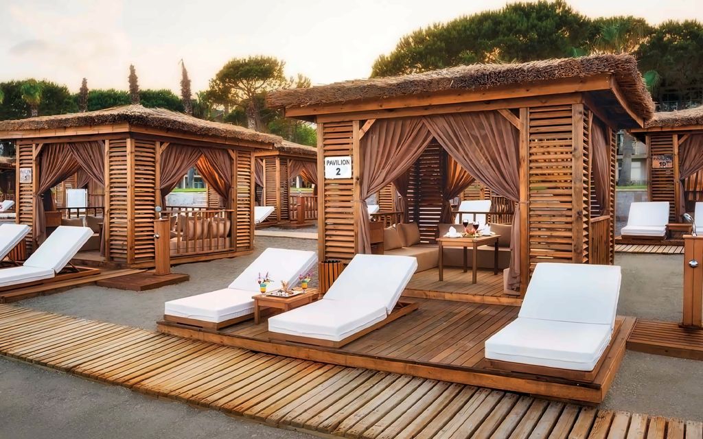 Du? pe plaj?, cabine de schimb, bar. Pavilioane VIP (contra cost, exist? o zon? cu seif, mini-bar, du? separat ?i ?ezlonguri pentru 4 persoane), zona 16+ (gratuit), o zon? pentru persoane cu dizabilitati.