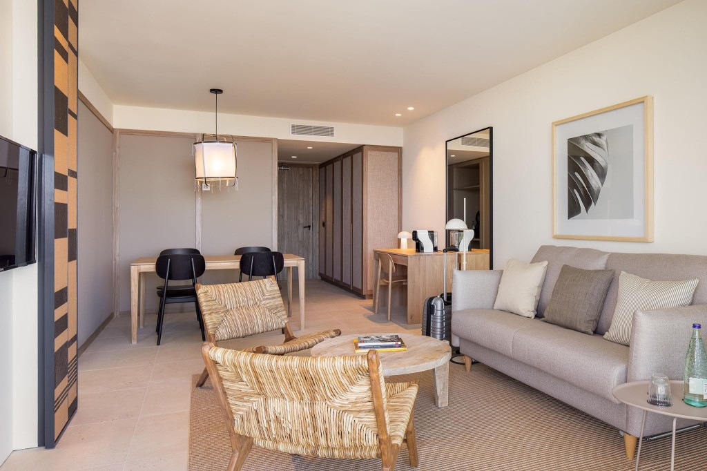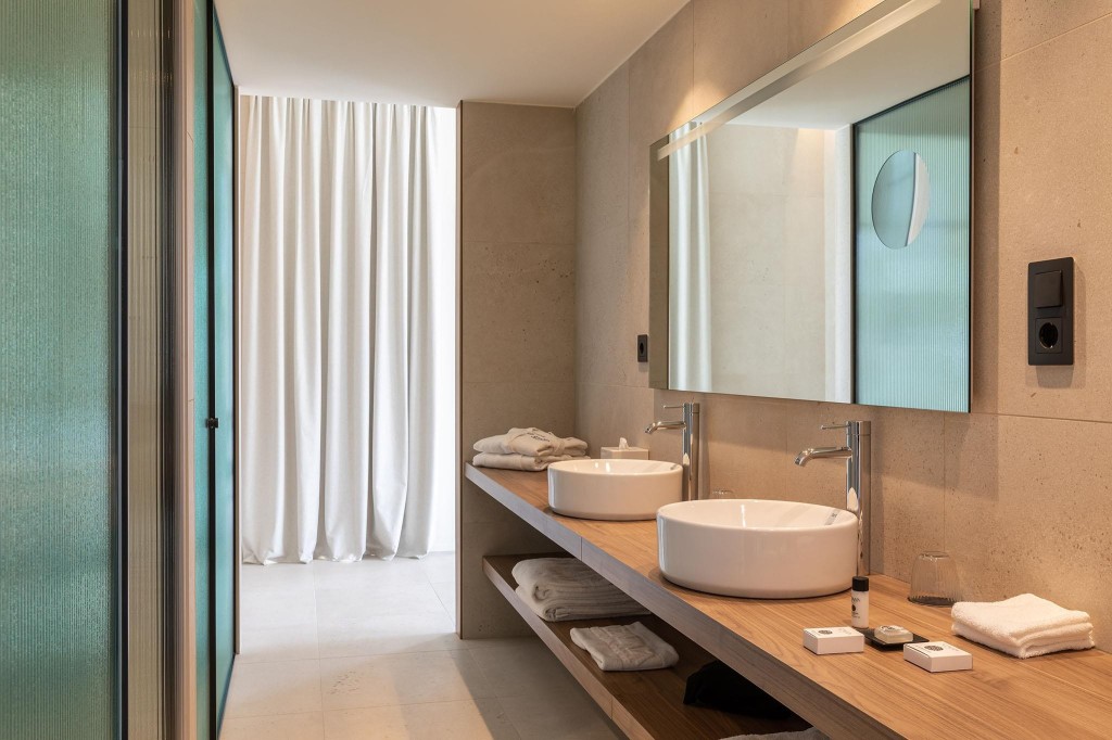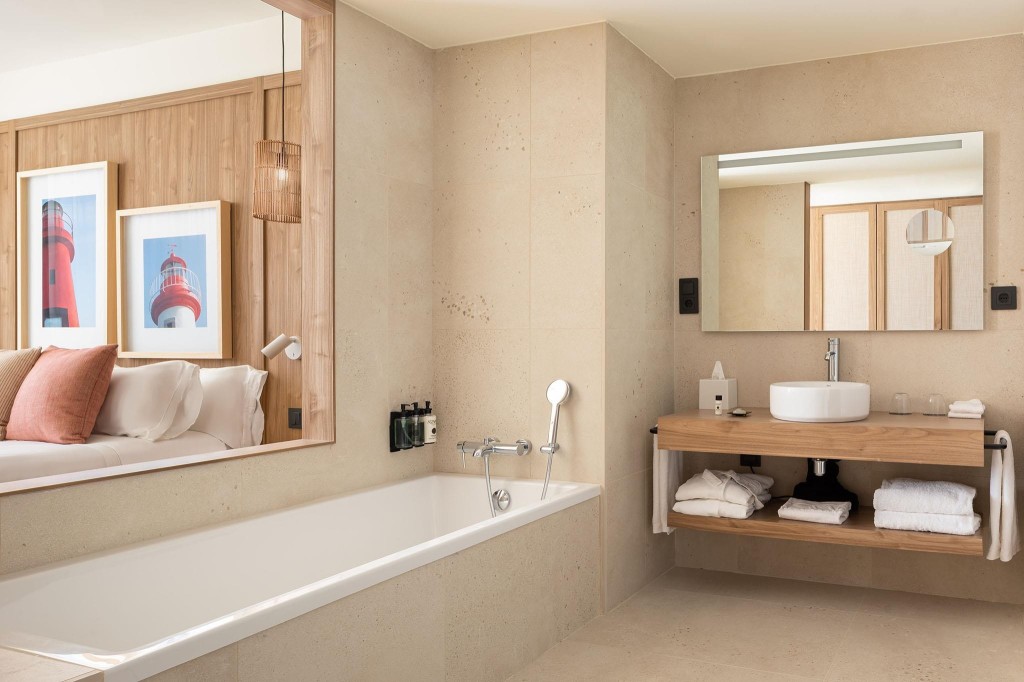 Camerele sunt dotate cu aer condiționat, TV-SAT, telefon, internet WiFi, seif, minibar, set de cafea, baie (cadă/dus, toaletă, uscător de păr, oglindă cosmetică) și balcon/terasă. Camerele duble Premium oferă vedere la grădină sau la piscină, iar cele cu vedere la mare sunt disponibile contra cost.