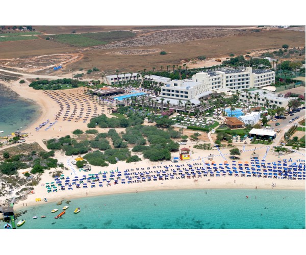 Locul vacantei dumneavoastra: hotelul este situat direct pe plaja, intre doua golfuri, in zona Makronissos, la vest de statiunea Ayia Napa. In apropiere se afla un Aqua Park-ul Water World si un centru de curse karting.