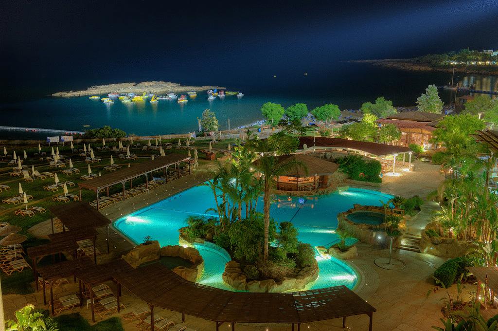 Hotelul Capo Bay se află în inima orașului Protaras din Cipru. Acest hotel situat pe plajă are grădini cu ape curgătoare și lacuri cu pești, care se întind până la malul mării, pe plaja cu steag albastru din Golful Smochinului.