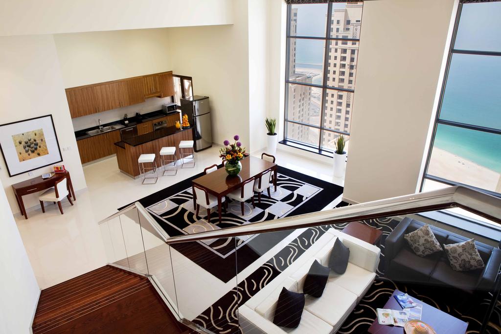 Hotelul Ramada Plaza Jumeirah Beach Residence este la 10 minute de mers cu maÈ™ina de Mall of the Emirates. Aeroportul InternaÈ›ional Dubai se află la 30 de minute de mers cu maÈ™ina. Camerele oferă Wi-Fi gratuit.