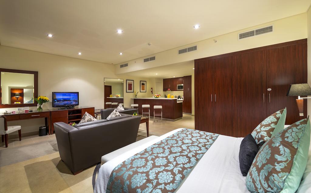 UnităÈ›ile de cazare de lux ale hotelului au fereastră mare din podea până în tavan. Fiecare suită oferă living mare, cu zonă de luat masa È™i un TV cu ecran plat. Bucătăria include ustensile de bucătărie, cuptor cu microunde È™i cuptor.