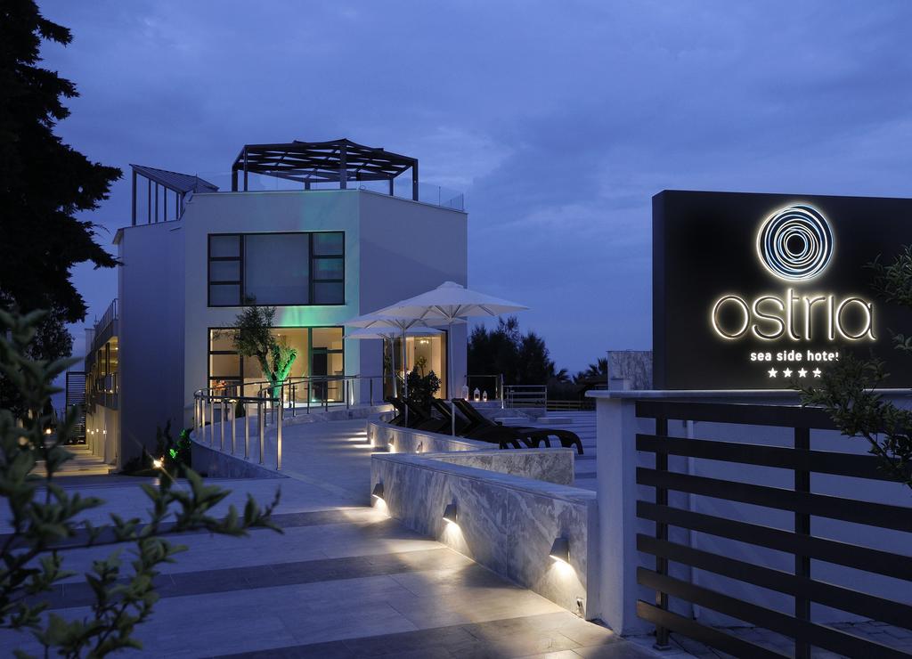 Hotelul Ostria Sea Side este situat la doar 10 metri de plaja de nisip din Chanioti și oferă o piscină în aer liber și un restaurant care servește mâncăruri grecești și internaționale. Acesta pune la dispoziție unități de cazare elegante cu acces gratuit la internet Wi-Fi și balcon mobilat, cu vedere la Marea Egee.