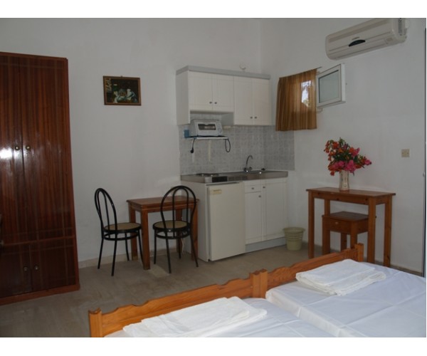 VILA ELENI: este situata la o distanta de aproximativ 200 m fata de mare. Facilitati camere: chicineta, baie cu dus, balcon, aparat de aer conditionat; asternuturile se schimba o data la 7 zile(la intrarea grupului la cazare).