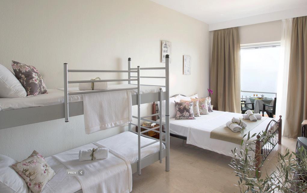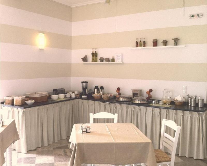 În fiecare zi este servit un bufet de mic dejun grecesc. Restaurantul proprietății oferă cină. Barul de pe plajă servește băuturi înviorătoare și cafea.