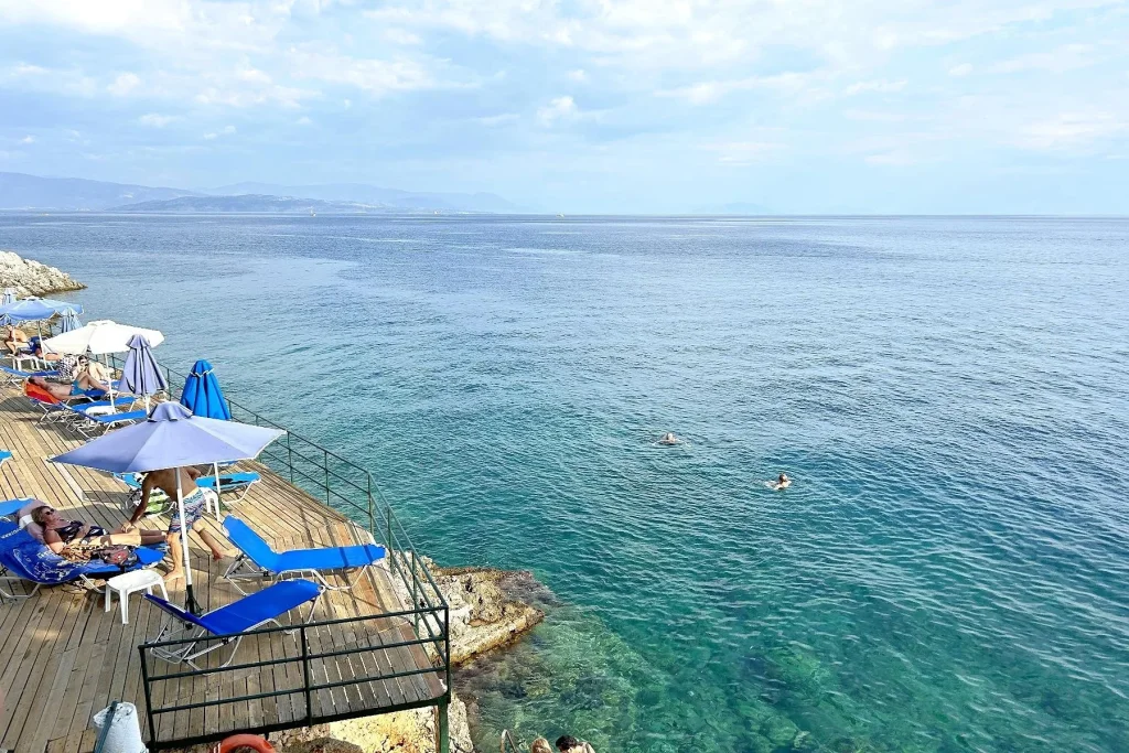 Hotelul se afl? la 1 km de centrul localit??ii Barbati ?i la aproximativ 19 km de aeroportul din Kerkyra, capitala insulei Corfu. Plaja cu pietri? din Barbati este accesibil? în 15 minute pe jos (circa 1.000 m), iar hotelul ofer? ?i un transfer gratuit cu autobuzul c?tre aceasta, ceea ce face deplasarea extrem de convenabil?. Accesul direct la mare este posibil chiar de sub hotel, prin debarcaderul propriu, o raritate apreciat? de iubitorii de snorkeling ?i scufund?ri. Sta?iunea Ipsos se afl? la doar 4 km distan??, oferind ?i mai multe op?iuni de taverne, baruri ?i cump?r?turi. La 1.000 m de hotel se g?sesc magazine ?i restaurante locale, astfel c? zona ofer? tot ce ai nevoie pentru un sejur complet.