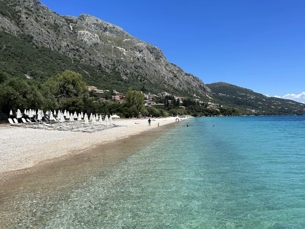 Sezlonguri si umbrele pe plaja Barbati (contra cost) - hotelul ofera transport public gratuit cu autobuzul catre plaja Barbati