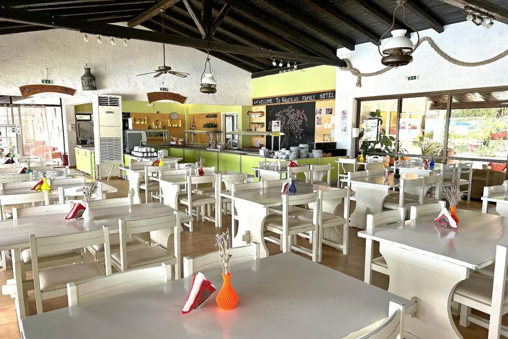 Pachetul all inclusive al hotelului acoper? toate mesele principale ?i multe dintre r?sf??urile zilei, transformând vacan?a într-o experien?? f?r? griji. Micul dejun, prânzul ?i cina sunt servite la bufet în restaurantul principal, oferind varietate ?i flexibilitate pentru întreaga familie. Pe parcursul dup?-amiezii, între orele 14:00 ?i 18:00, sunt disponibile gust?ri u?oare, iar între 16:00 ?i 17:00 oaspe?ii se pot bucura de cafea, ceai ?i desert. Copiii au parte de un plus de dulce prin înghe?ata local? inclus? în pachet. B?uturile alcoolice ?i nealcoolice de produc?ie local? sunt incluse zilnic între 10:00 ?i 23:00. B?uturile interna?ionale nu sunt incluse în pachetul standard. Orele de servire pot suferi modific?ri, în func?ie de sezon ?i politica hotelului.