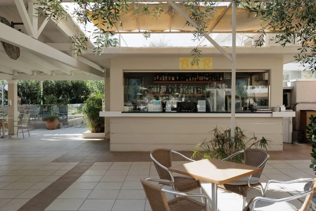 Hotel pune la dispozi?ia oaspe?ilor dou? piscine în gr?din?: una cu ap? de mare ?i jacuzzi ?i una cu ap? dulce, ambele cu ?ezlonguri ?i umbrele incluse gratuit (prosoapele se închiriaz? contra cost). O piscin? separat? pentru copii completeaz? oferta pentru familii. Hotelul dispune de un restaurant principal unde se servesc mesele în regim all inclusive, o tavern? lâng? plaj? disponibil? contra cost, dou? baruri ?i un col? TV pentru momente de relaxare. Wi-Fi-ul este gratuit în holul recep?iei, iar în camere conexiunea la internet este disponibil? contra cost. Un magazin de suveniruri se afl? în incinta hotelului. Recep?ia asigur? servicii pentru oaspe?i, inclusiv informa?ii despre taxa turistic? care se achit? direct la hotel.