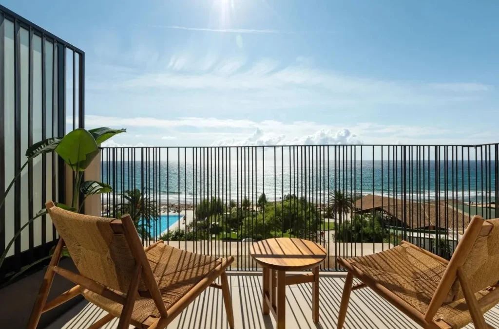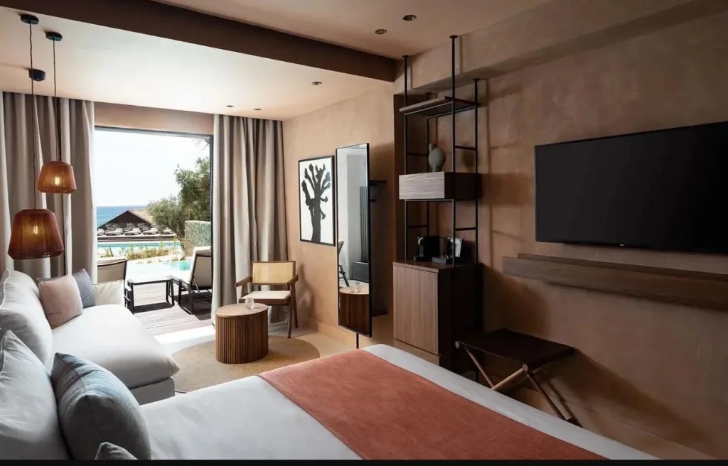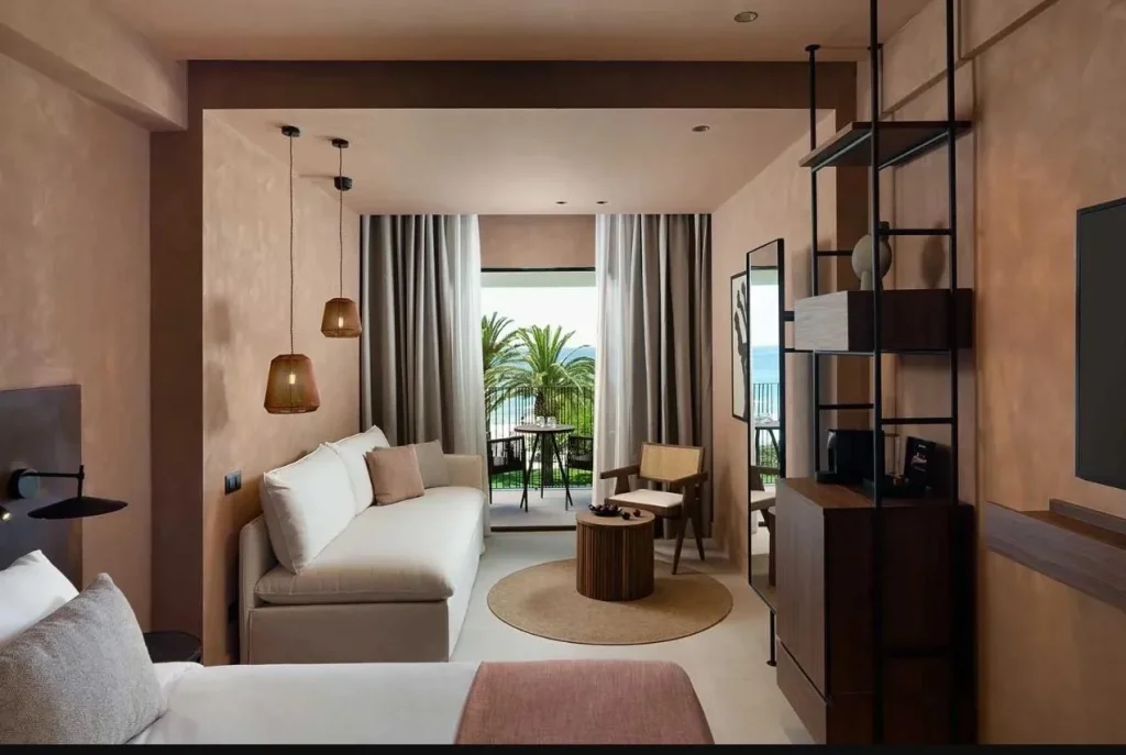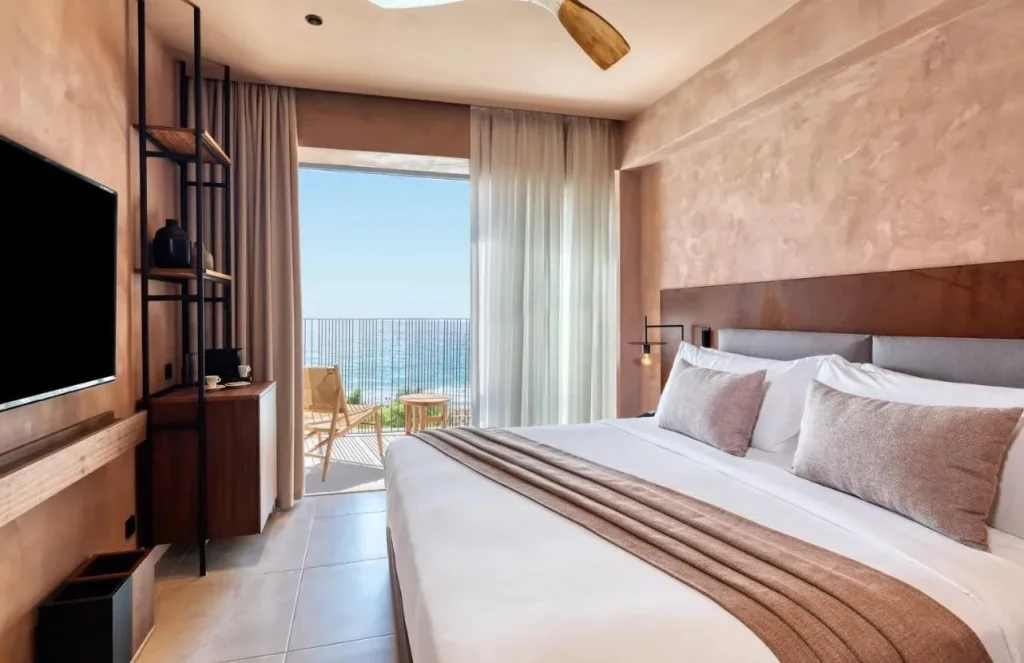 Suita Superioar? (Sapphire Sublime Suite) — compus? din dormitor ?i living, cu vedere la mare, pentru o experien?? de cazare premium.