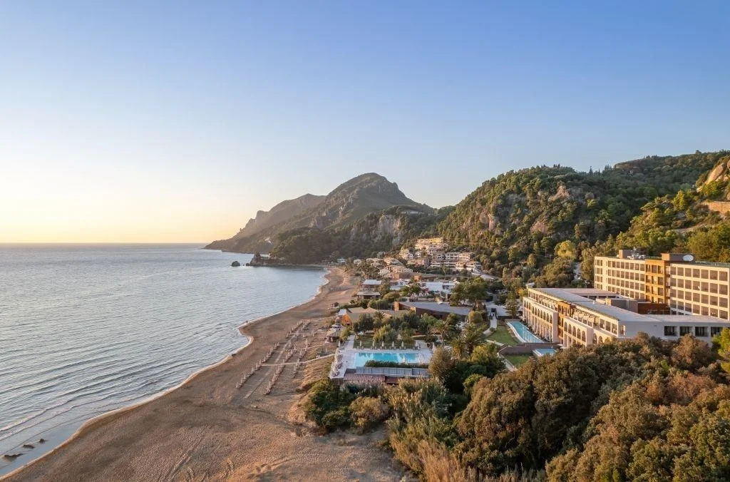 Ascuns între dealurile verzi ale mun?ilor Pelekas ?i marea str?lucitoare a unuia dintre cele mai frumoase golfuri din Corfu, acest hotel de 5 stele din Glyfada reprezint? defini?ia elegan?ei mediteraneene. Complet renovat, hotelul îmbin? serviciile de înalt nivel cu o atmosfer? cald? ?i familial?, oferind un cadru romantic ?i lini?tit ideal atât pentru cupluri cât ?i pentru familii cu copii. Înconjurat de o gr?din? îngrijit? ?i cu acces la o plaj? nisipoas? larg?, sejurul aici promite o experien?? de vacan?? autentic? pe insula Corfu.