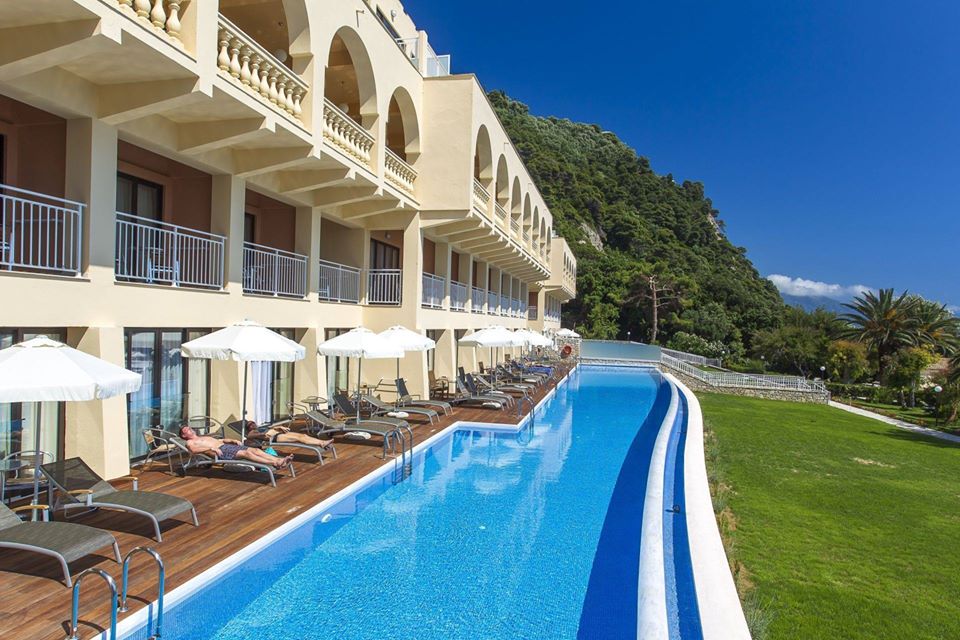 Hotel Louis Grand este situat in statiunea Glyfada, pe plaja cu nisip, la 12 kilometri de orasul Corfu, intr-o locatie ideala si dispunand de :