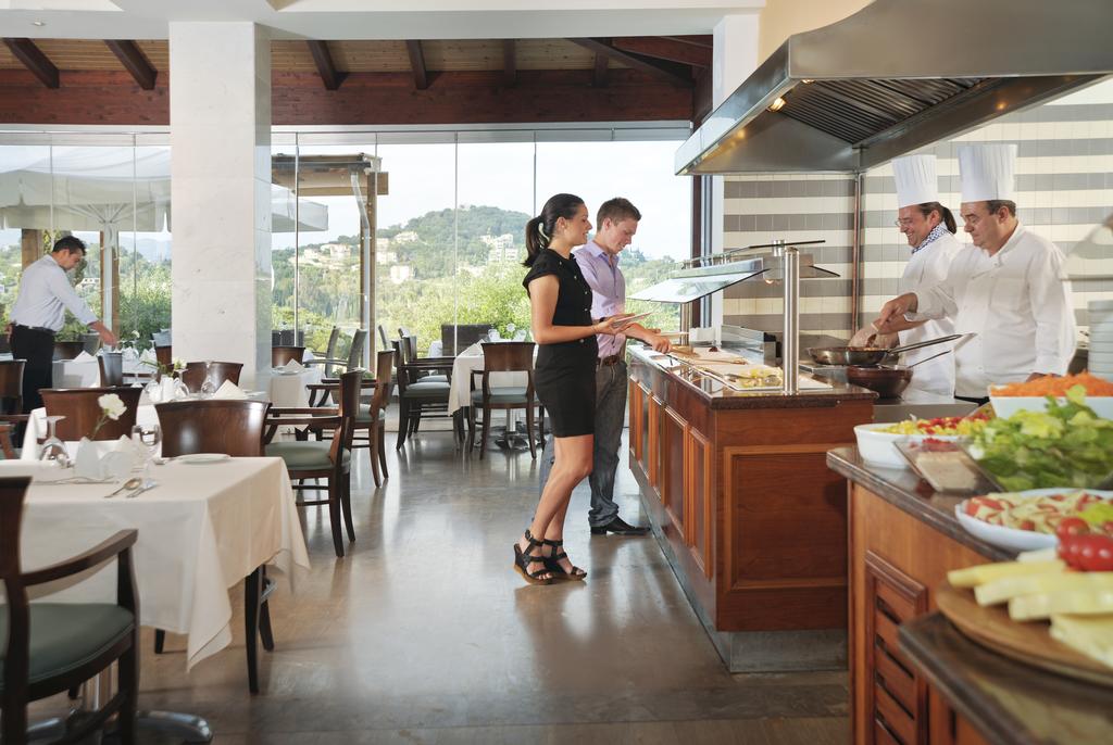 Hotelul Corcyra Beach pune la dispozitia oaspetilor sai un restaurant principal, un restaurant la piscina, un restaurant cu specific asiatic, 5 baruri, piscina. Oaspetii se pot bucura in mod gratuit de un jacuzzi in aer liber, volei pe plaja, darts, mini-golf (ziua), tenis de masa, programe de animatie, muzica live.