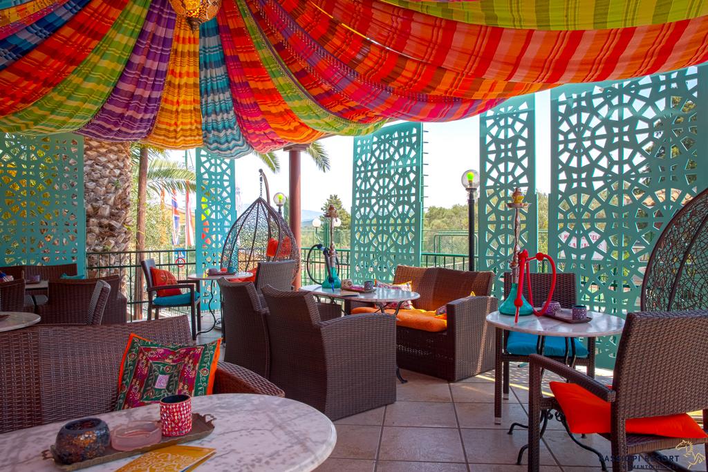 Turistii îÈ™i pot începe ziua cu micul dejun tip bufet în stil american. Tot aici se pot servi È™i mâncăruri mediteraneene la restaurantul proprietăÈ›ii. Barul hotelului, ce are un decor în stil oriental, va oferă narghilea shisha cu arome.