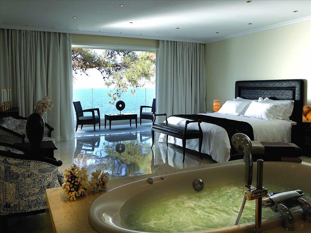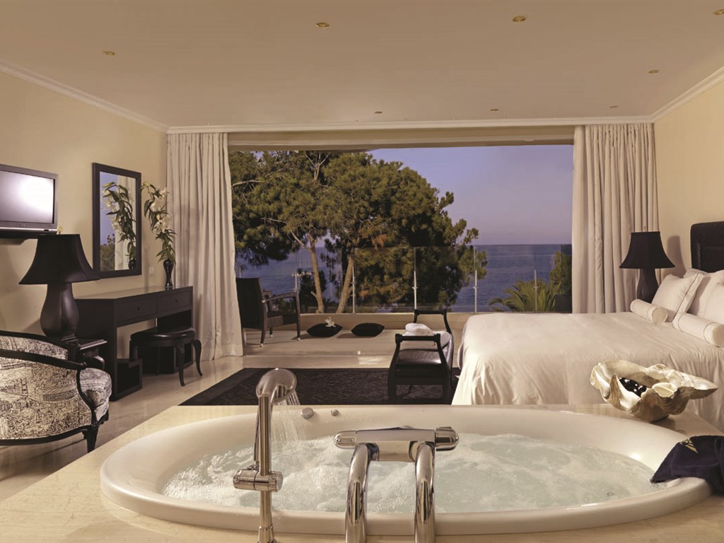 Junior Suite Sea Front SV (~60 mp) Dormitor cu living, sala de mese, jacuzzi, cabina de dus, balcon.