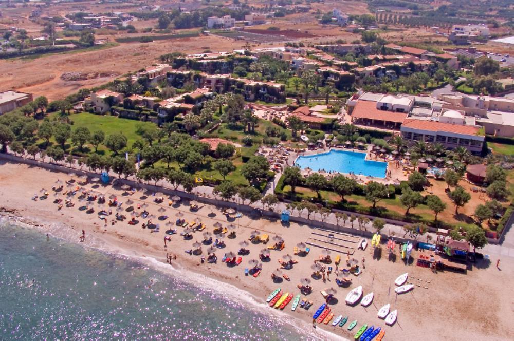Situat pe o plajă de nisip, într-o grădină amenajată, cu palmieri, Aquis Zorbas are o piscină în interior și în aer liber, un teren de tenis și 2 restaurante mediteraneene. Acesta oferă bungalouri elegante, cu acces gratuit la internet Wi-Fi și balcon mobilat, cu vedere la Marea Cretei sau la vegetația luxuriantă.
