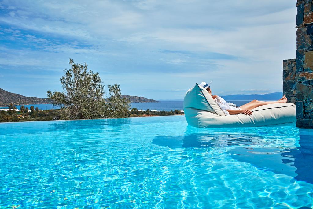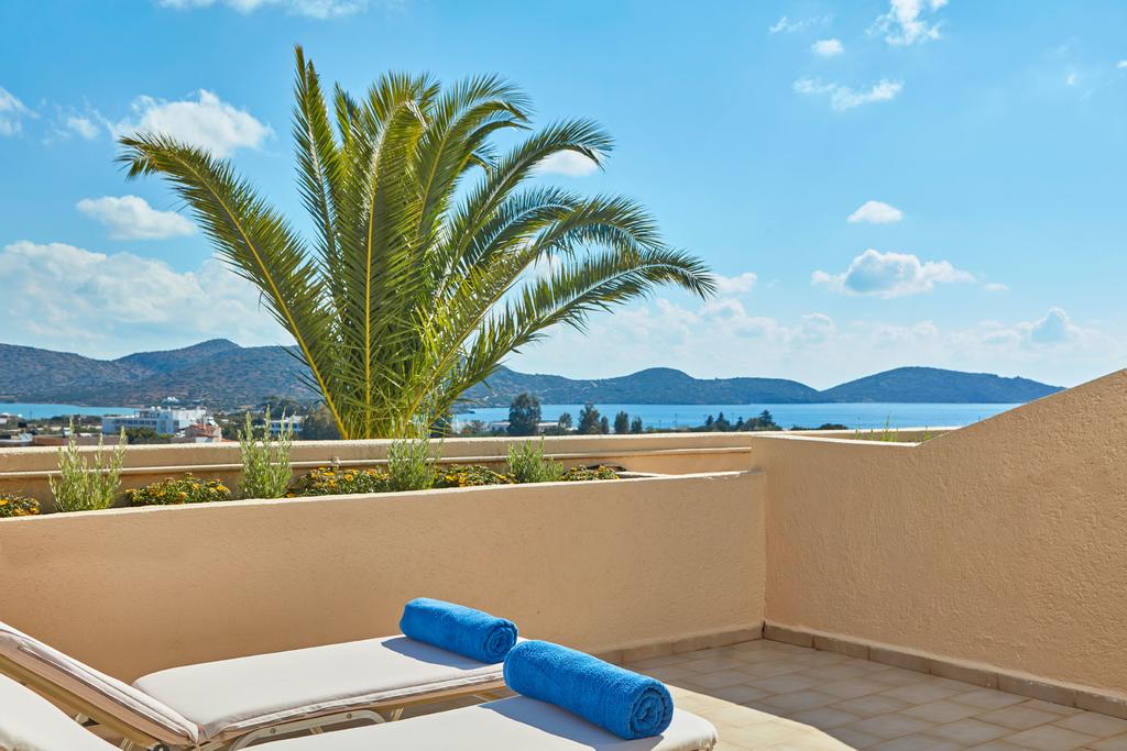 Camerele au balcon cu vedere la grădinile mediteraneene sau la albastrul închis al golfului Elounda. Toate au aer condiționat și TV prin satelit, fiind disponibile și camere cu piscină comună sau privată.
