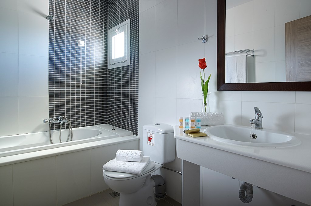 -Suites Family IV (~ 30-38 mp) 2 camere separate de o ușă sau parțial de un perete. Pat dublu sau 2 paturi de o persoană și 2 canapele sau 2 paturi de o persoană.