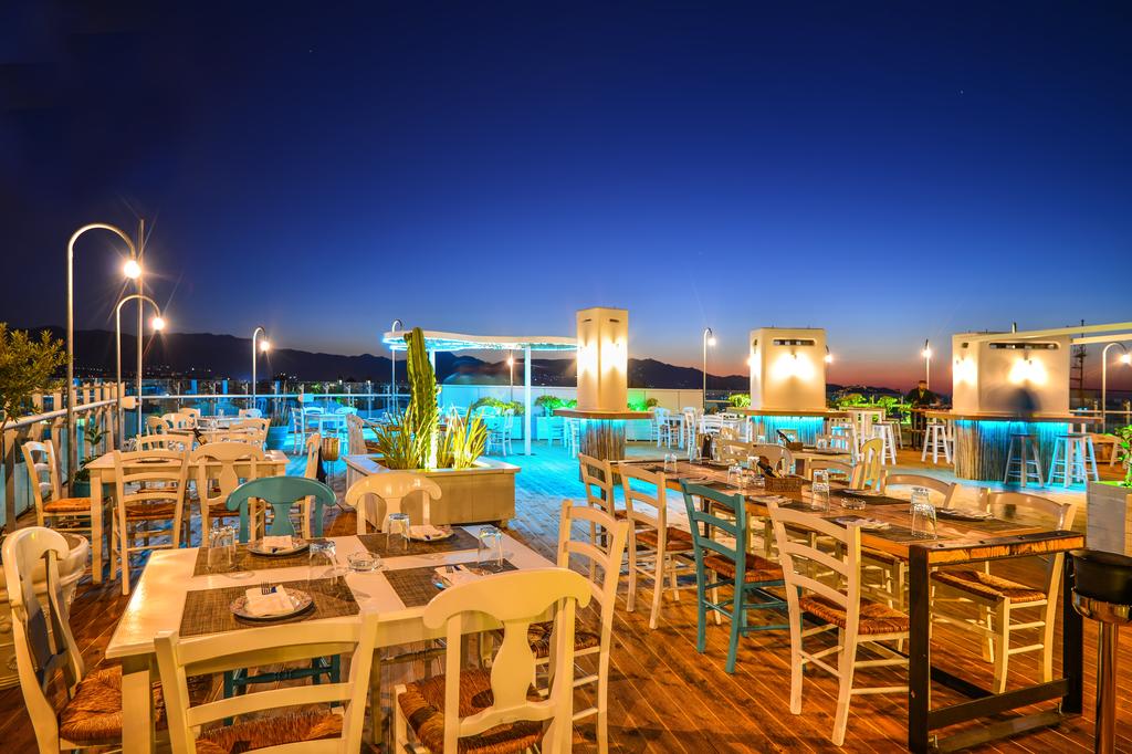 Restaurantul Erofilli servește bufete bogate la prânz și cină. Dimineața este servit un mic dejun grecesc, care include dulciuri de casă și produse tradiționale, cum ar fi brânză feta și mizithra, măsline și stafide. Taratsa Astoria Cocktail & Food Bar are vedere la castelul veneÈ›ian È™i port și oferă gustări È™i cocktailuri. Cafeneaua Capsis este deschisă pentru prânz și cină, iar room service este disponibil nonstop.
