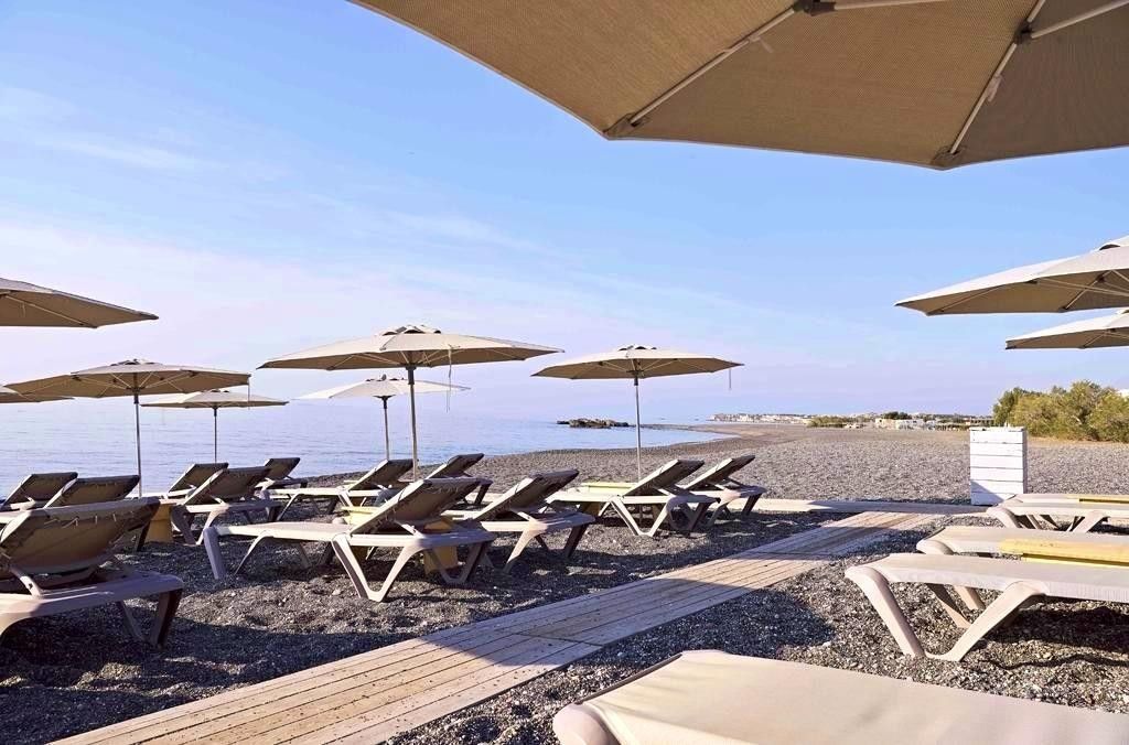 Plaja hotelului este amenajat? cu ?ezlonguri ?i umbrele gratuite, du? gratuit ?i toalet?. Prosoapele de plaj? sunt disponibile contra unui cost mic de aproximativ 1 EUR/zi. Plaja are un fundal de pietri?, caracteristic coastei sudice a Cretei.