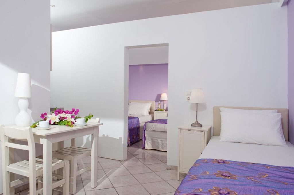 Studiourile, suitele și apartamentele de la Primavera Beach sunt prevăzute cu balcon privat, multe cu vedere la Marea Egee și la apusul soarelui. Majoritatea unităților includ și o chicinetă complet utilată, cu frigider.