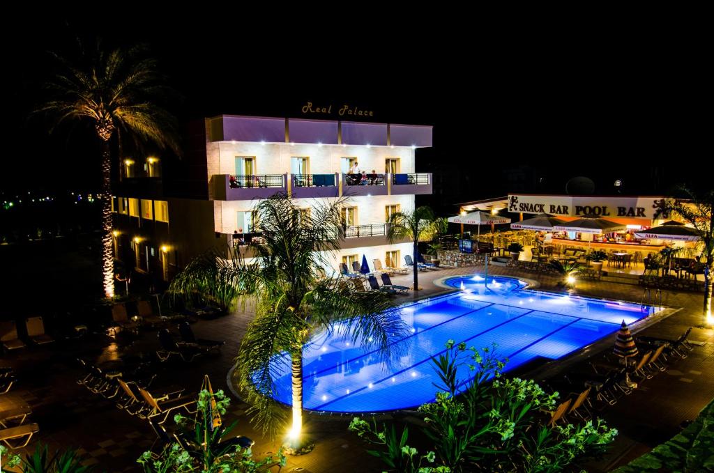 Situat la marginea oraşului Malia, Real Palace Hotel & Apartments oferă o piscină, o cadă cu hidromasaj și o terasă la soare mobilată. Hotelul are, de asemenea, un snack bar la piscină, un bar-restaurant și o sală de jocuri cu biliard și tenis de masă.