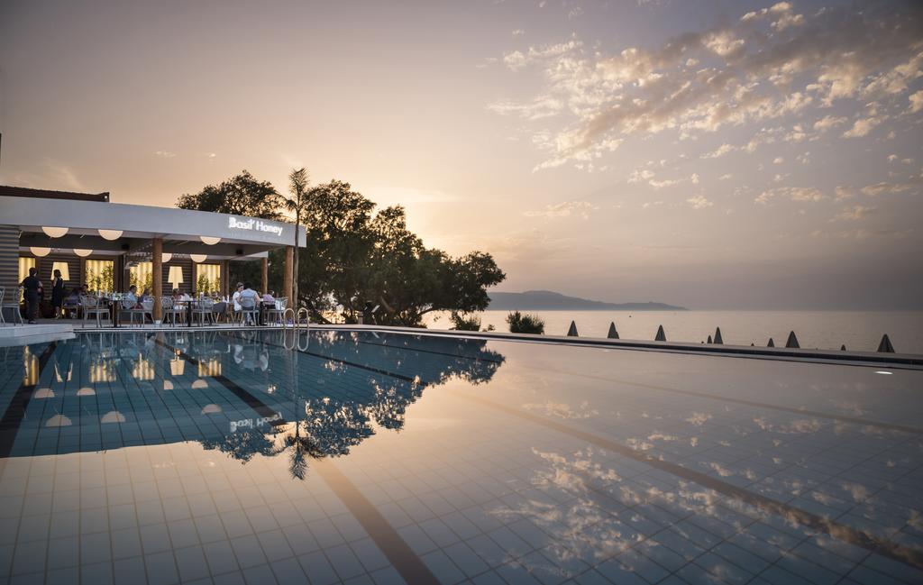 Micul dejun continental este servit zilnic în zona de luat masa. Restaurantul Basil' Honey are vedere la mare È™i oferă preparate cretane moderne, gătite cu ingrediente proaspete, o gamă largă de vinuri locale È™i deserturi delicioase. Barul de la piscină servește o varietate de băuturi È™i cocteiluri răcoritoare.