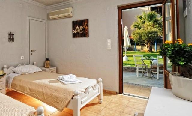 Spațiile de cazare de la Aggelo Family Hotel sunt mobilate cu gust și au vedere la mare, la piscină sau la grădină. Acestea sunt dotate cu un TV cu canale prin satelit, frigider È™i o baie privată cu articole de toaletă È™i uscător de păr.