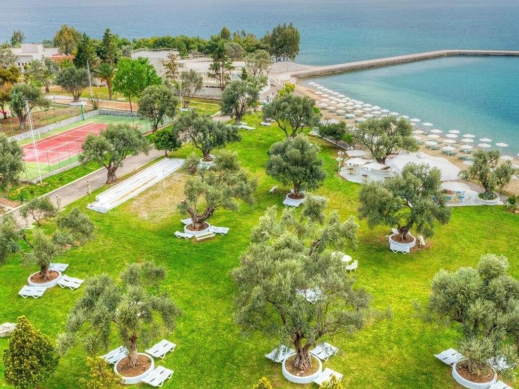 Hotelul pune la dispozi?ie o gam? variat? de activit??i sportive gratuite, printre care: fitness, yoga, pilates, tenis de câmp, volei, minigolf ?i darts. Copiii beneficiaz? de un club dedicat, care le ofer? programe de anima?ie ?i activit??i supervizate, astfel încât p?rin?ii s? se poat? bucura de momente de relaxare. Contra cost, oaspe?ii pot accesa: masaje, saun?, hamam, tratamente de înfrumuse?are, biliard, sporturi nautice pe plaj? ?i scufund?ri – toate disponibile direct în cadrul hotelului sau pe plaj?. Excursiile din zona Eretria ?i împrejurimi completeaz? oferta, insula Eubea ascunzând numeroase situri arheologice ?i peisaje naturale de explorat.
