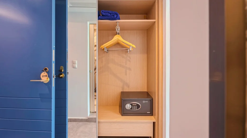 Complexul este format din cladirea principala, bungalouri la parter si mai multe cladiri cu un singur etaj, toate integrate armonios in gradina mediteraneana. Toate tipurile de camere sunt dotate cu aer conditionat cu control individual (gratuit), minibar, telefon, televizor prin satelit, seif, baie cu dus sau cada si uscator de par, balcon sau terasa si Wi-Fi gratuit. Indiferent de categoria aleasa, oaspetii beneficiaza de confort complet si de atmosfera calda, specifica unui resort de 5 stele pe malul Egeei.