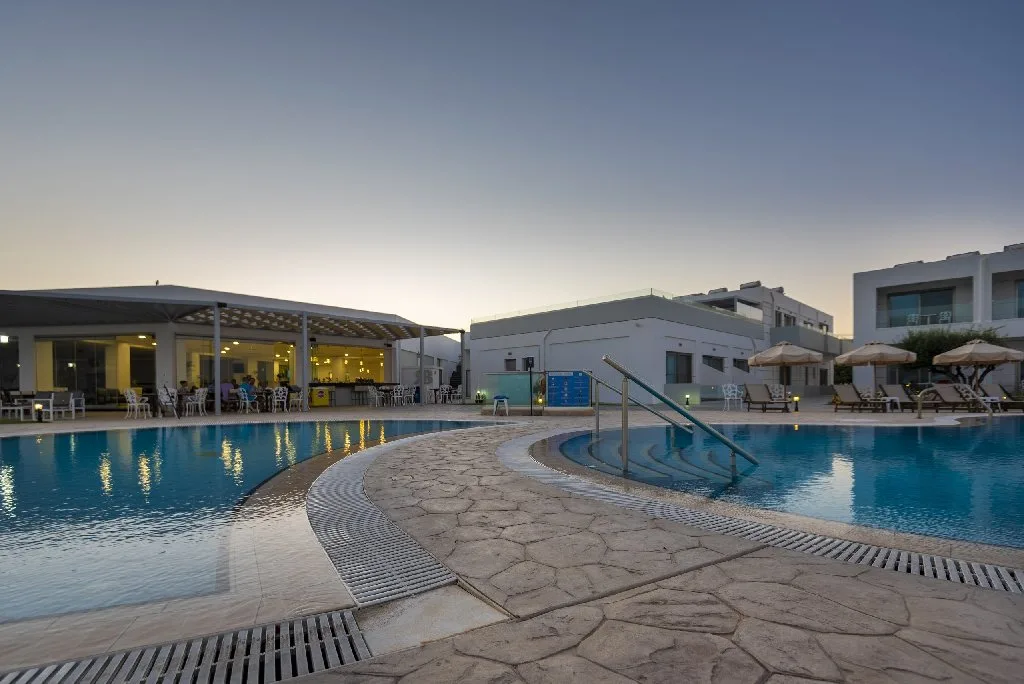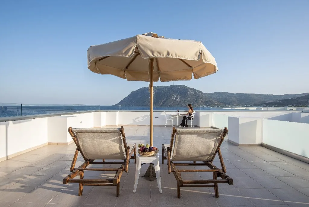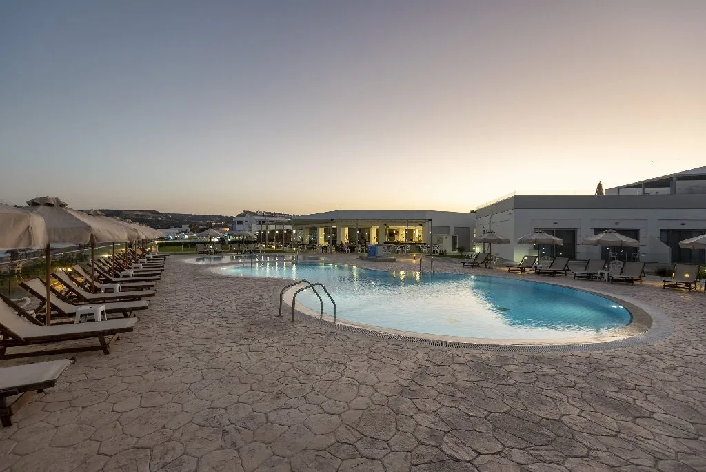 Asezat in Kefalos, in partea sudica a insulei Kos, complexul beneficiaza de una dintre cele mai frumoase si linistite pozitii din intreaga insula. Zona Kefalos este renumita pentru plajele sale spectaculoase, apele cristaline si peisajele autentice, nealterate de turismul de masa – un avantaj imens pentru cei care prefera o vacanta mai intima si mai relaxata.