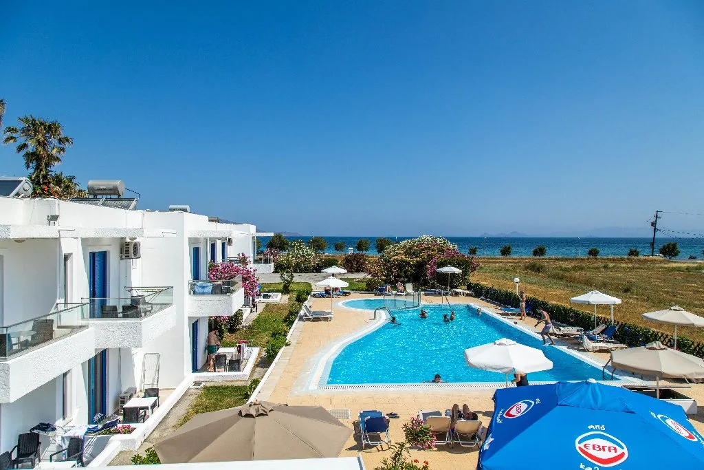 Intr-un cadru mediteranean plin de prospetime, inconjurat de o gradina cu palmieri si la doar cativa pasi de plaja, Miros Apartments reprezinta alegerea perfecta pentru vacantierul care cauta simplitate, liniste si autentica atmosfera greceasca. Situat in statiunea Tigaki, pe insula Kos, acest complex de apartamente cu 2 stele se adreseaza cuplurilor, familiilor si calatorilor independenti care prefera libertatea unui sejur self-catering, fara a renunta la confort si relaxare. Daca iti doresti dimineți lenese langa piscina, plaje cu nisip fin la doi pasi si seri petrecute in tavernele locale, atunci ai gasit locul potrivit.