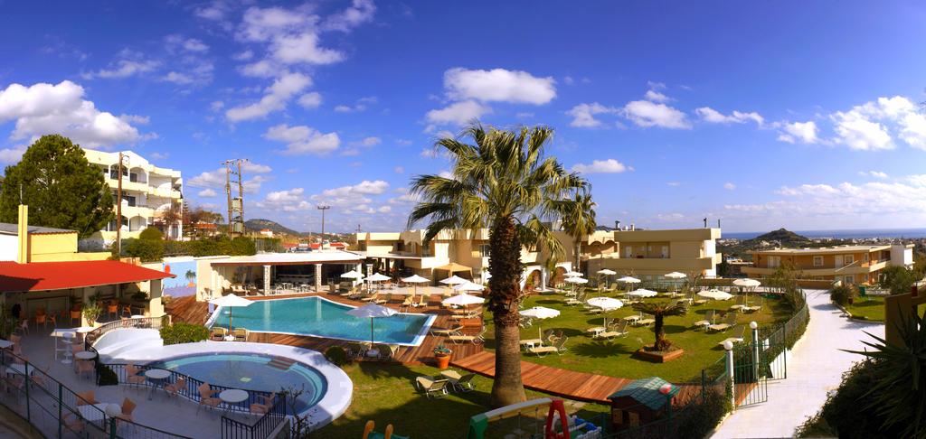 Localizare: in Faliraki, la 25 min distanta de plaja cu nisip, la 1500 m de centrul statiunii (hotelul este situat pe un deal cu vedere panoramica), la 15 km de orasul Rodos si la 20 km de aeroport. Durata transfer: intre 30 si 60 minute.