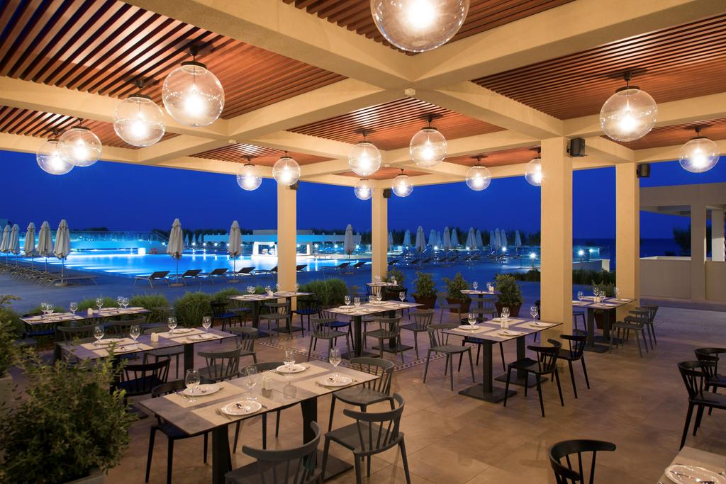 Există 3 restaurante principale, o cafenea, un bar cu cocteiluri tropicale și 2 baruri lângă piscină. De asemenea, vă puteți bucura de un mic dejun american tip bufet, cină tip bufet și seri speciale cu specialități grecești.