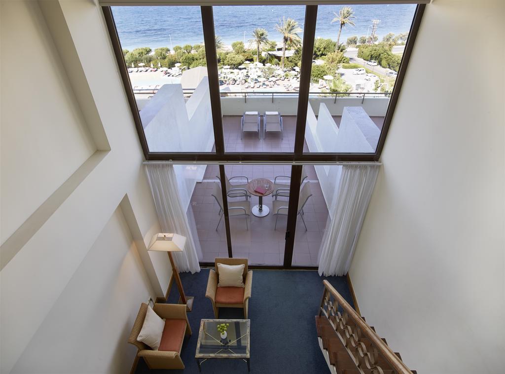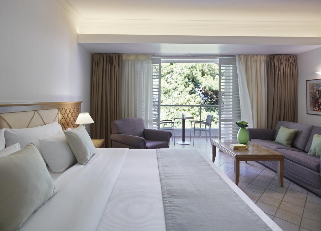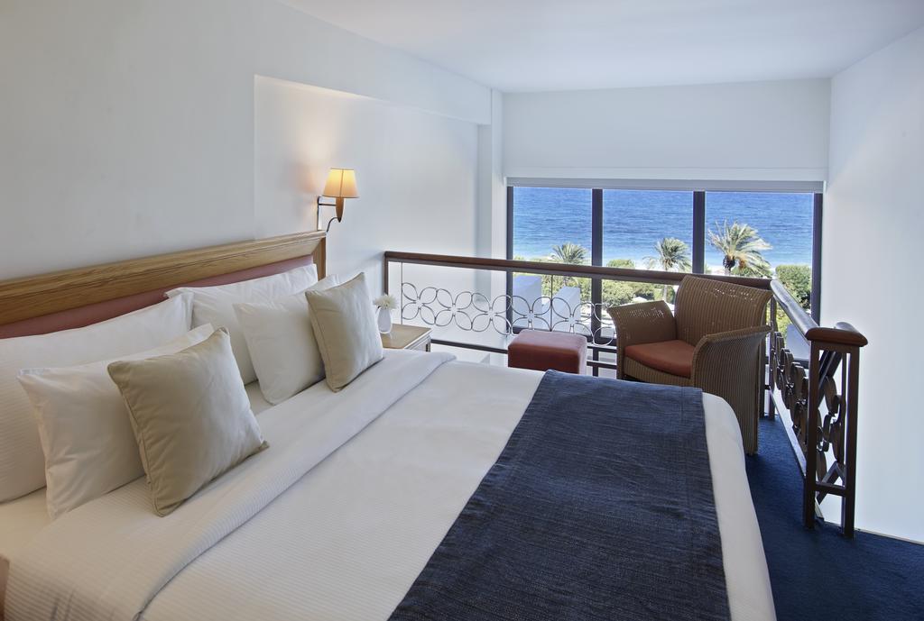 Camerele au balcon cu vedere la Golful Ixia sau la pădurea de pe deal. Fiecare cameră oferă aer condiționat, seif, TV prin satelit și minibar. Se oferă gratuit papuci și halate de baie.